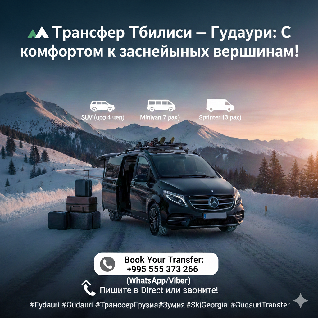 Сезон 2025-2026 открыт! Дорогие любители гор и активного отдыха, мы приглашаем вас начать свой зимний отпуск в Грузии с безупречного сервиса. Мы доставим вас из аэропорта или отеля Тбилиси прямо к склонам Гудаури. 🌟 Почему выбирают наш трансфер? 🚗 Стоимость и варианты автомобилей Класс автомобиля Вместимость В одну сторону Туда и обратно Toyota Highlander (Standard) […]